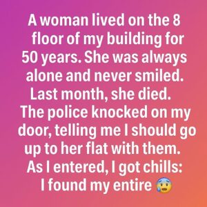 A woman lived on the 8th floor of my building for 50 years. She kept to herself and rarely interacted with anyone. Last month, she peacefully passed…