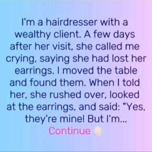 She lost her expensive earrings at my salon, when I found them, she just gave them to me