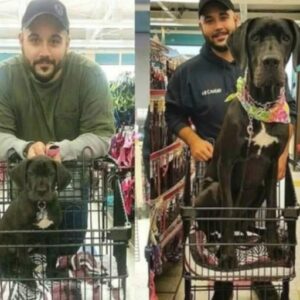 I put her in a shopping cart as a puppy just for fun—but now, a year later, she still won’t walk into that store.