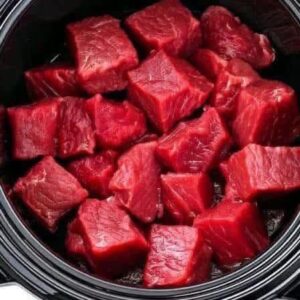 Put raw cubed beef in a slow cooker with these 3 ingredients. You won’t believe how good it tastes.
