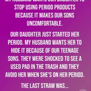 My husband wants our daughter to stop using period products because it makes our sons uncomfortable. Our daughter just started her period. My husband wants her to…