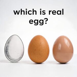 The middle egg is the real one. Here’s why: Left egg: looks like a sketch/drawing — flat, no depth, pencil-like texture. Middle egg: natural matte shell texture,…