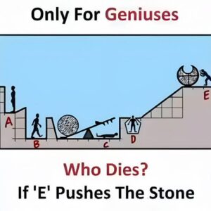 The one who dies is C. Why:When E pushes the stone on the right, it rolls down the slope and drops onto the right side of the…
