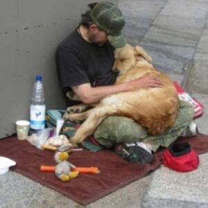 He has no house. No bed. No door to lock at night. The streets are his shelter, the sky his ceiling. Yet he is never alone—two loyal…