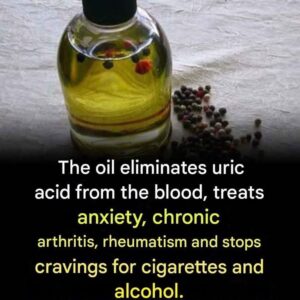 The oil eliminates uric acid from the blood, treats anxiety, chronic arthritis, rheumatism, and stops cravings for cigarettes and alcohol.