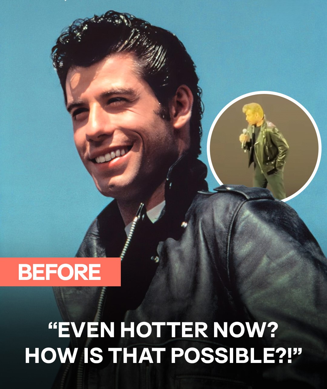 John, who starred as the drag racing, hip-swinging bad boy Danny Zuko in the 1978 hit, walked onto the stage to a roaring crowd. Fans cheered as he stepped out wearing Danny’s signature black leather jacket paired with a fitted black t-shirt and dark jeans.