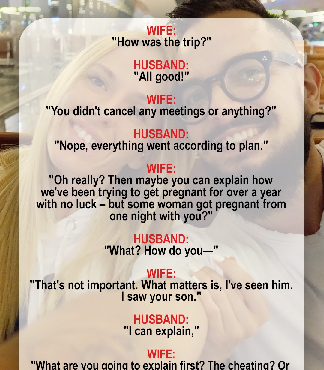 “Oh really? Then maybe you can explain how we’ve been trying to get pregnant for over a year with no luck — but some woman got pregnant from one night with you?” I snapped.