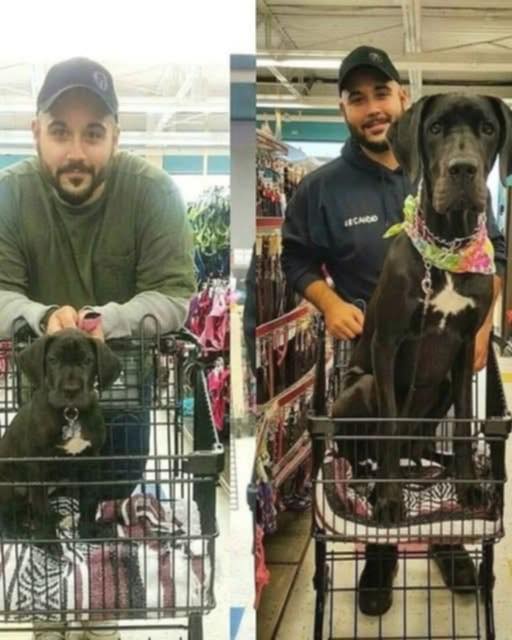 Now she’s huge and barely fits in the cart. People stare, and the workers laugh, but I still push her around in it. It’s become our tradition—me and my giant dog, riding in style on her zebra-print blanket like she owns the place.
