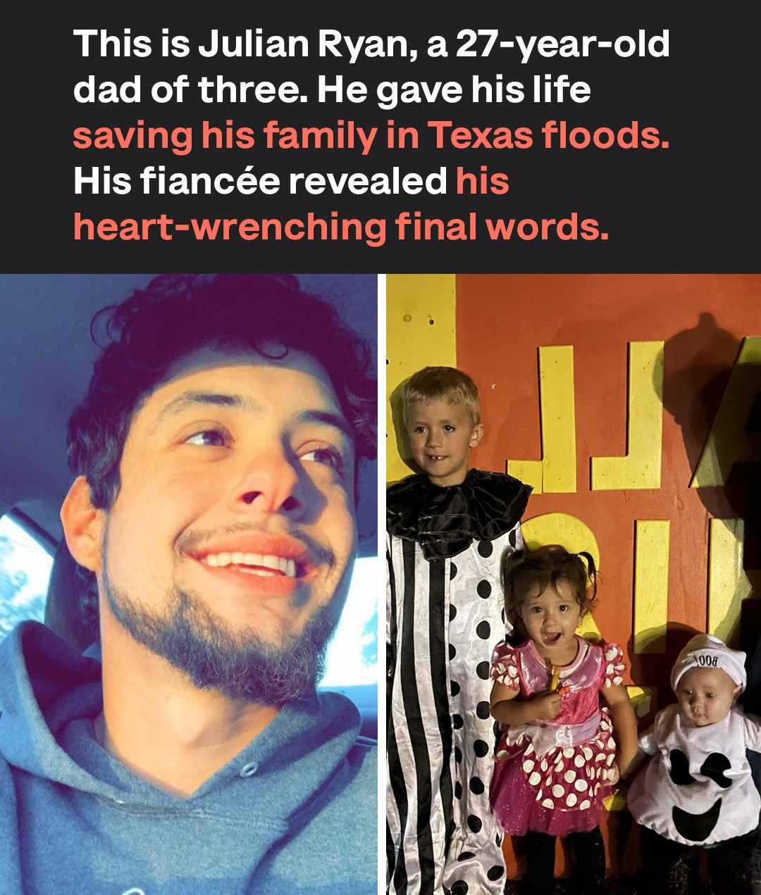 The tragedy that claimed multiple lives along the Guadalupe River also revealed extraordinary stories of courage, as emergency responders and survivors began piecing together accounts of individuals who risked everything to save others. One of them is a 27-year-old father of three, Julian Ryan.