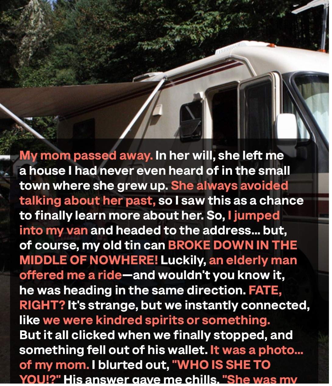 Within the hour, I was gripping its worn steering wheel, the engine rumbling beneath me. “Okay, Mom,” I murmured, glancing at the photograph of us taped to the dashboard. “I’m doing this. Whatever’s out there, I’ll find it.”