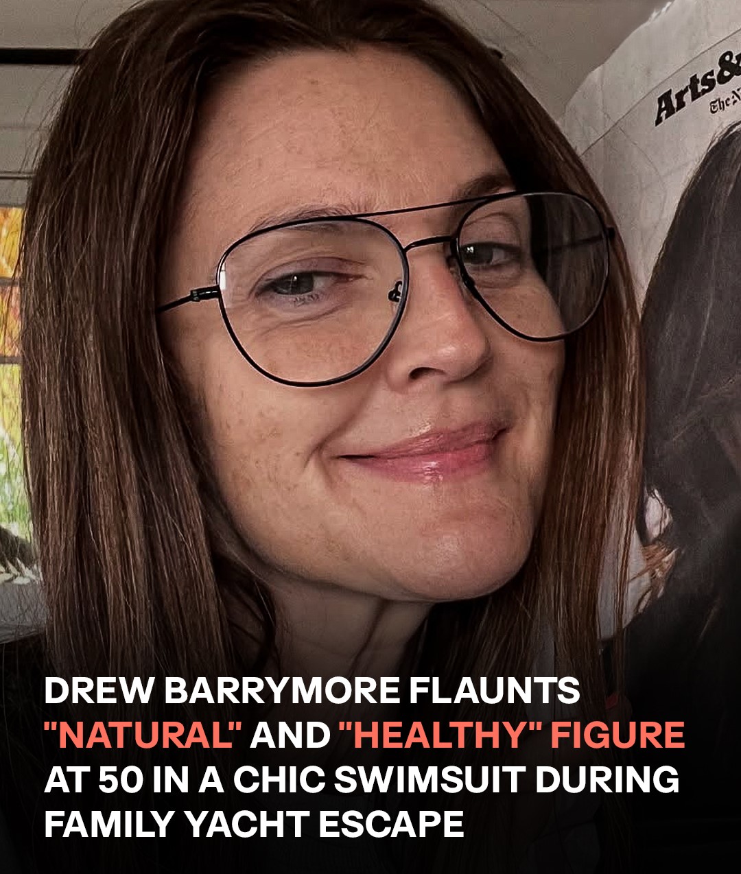 In the photos, Barrymore is wearing a stunning black one-piece swimsuit. In one image, she holds up a blue towel around her waist. Another image shows her on the yacht adjusting her swimsuit.