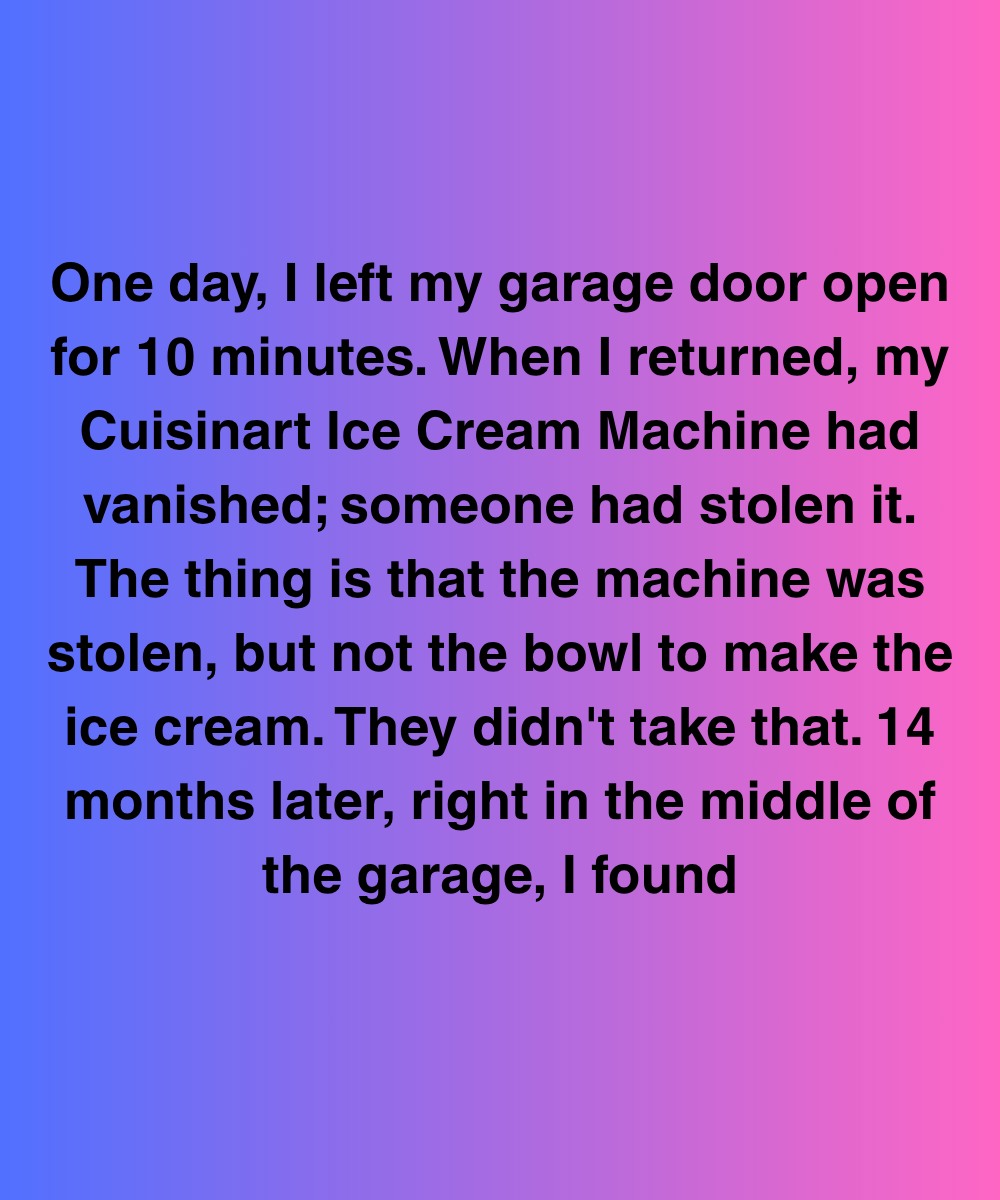 There, right in the middle of the garage floor, sat my ice cream machine. Not dusty. Not damaged. Clean. Plugged in. Humming softly.