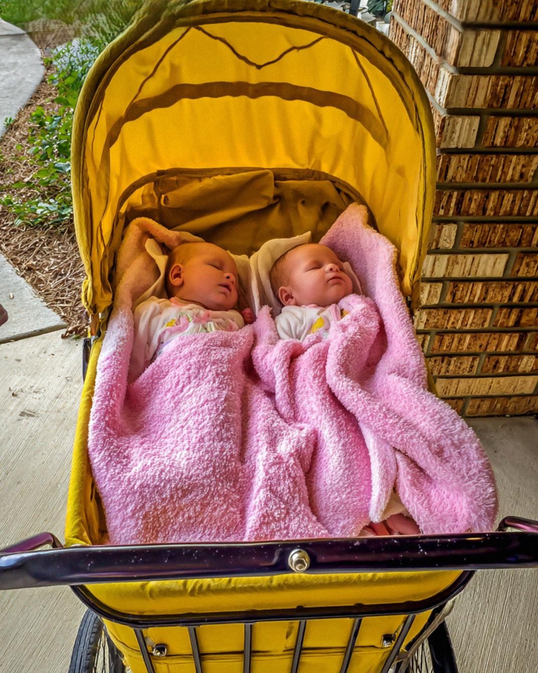 On the porch stood my daughter, pale as paper, gripping a stroller handle. Inside lay two tiny newborns—one squirming, the other asleep beneath a faded yellow blanket. They looked like dolls until the fussy one hiccuped.