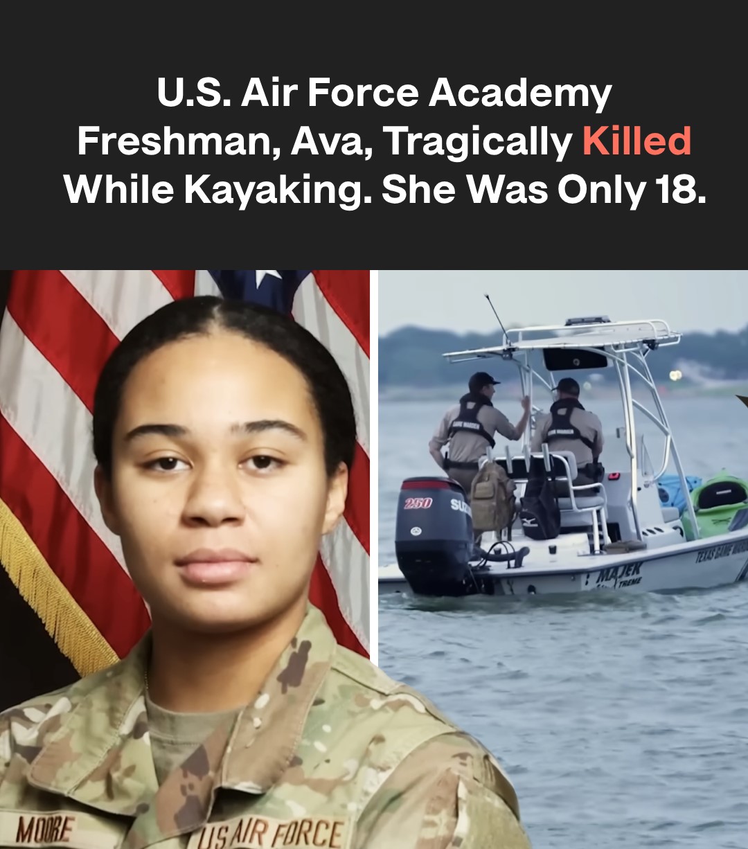 Ava Moore, 18, who recently finished a military preparatory program, was killed in a fatal water-related accident while kayaking on Lake Grapevine on the evening of May 25, 2025.