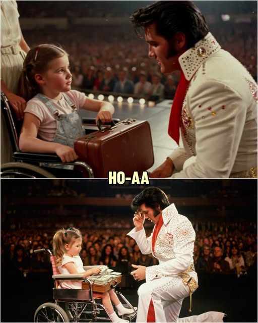 Away from the blinding spotlights, the girl opened her suitcase. At first glance, it appeared to contain stacks of dollar bills. Elvis recoiled, bewildered. But as the child explained in a soft voice, the “bills” were symbolic. Each one represented a “coin of hope,” tied to a letter written by someone whose life had been touched by Elvis’s quiet generosity.