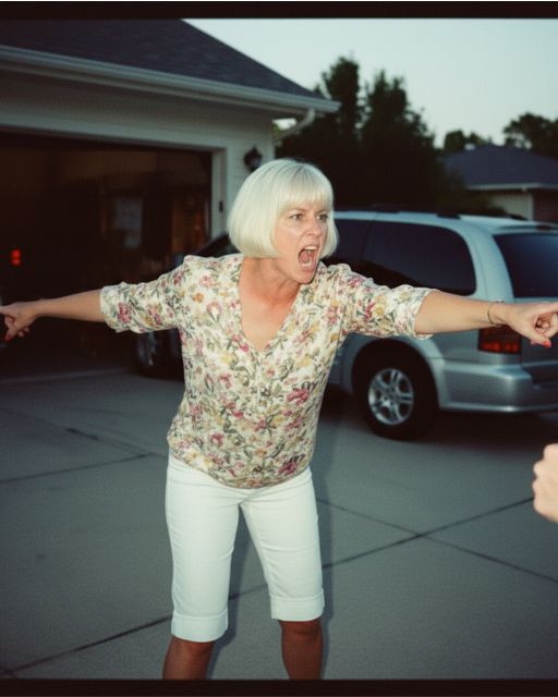 Mom—floral blouse, white shorts, jaw set—planted herself in the middle of the driveway like a toll booth no one was getting past. I was hauling groceries from the car when I realized she wasn’t yelling at me this time. She was pointed at someone halfway in the shadows.