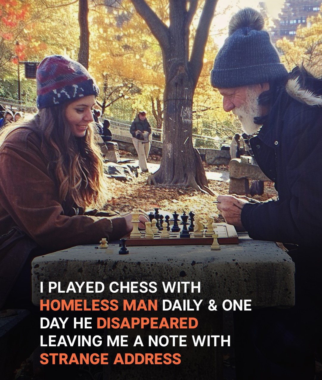 Every day, Jennifer played chess with a homeless man who shared his stories with her. One day, he borrowed money and then disappeared! In despair, Jennifer sat down at the chess-playing table in the city park. Suddenly, she noticed a piece of paper under the chessboard. It was a note unmistakably addressed to Jennifer!