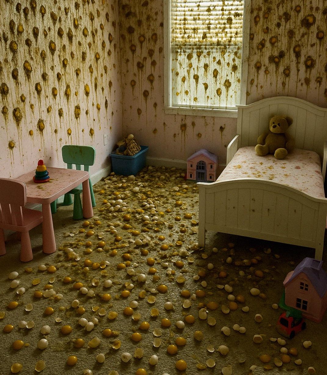 We spent hours that night trying to clean it. We scrubbed the walls and shelves and threw out the toys, but the smell lingered for weeks. Eventually, we had to take out a loan just to redo the playroom from scratch.