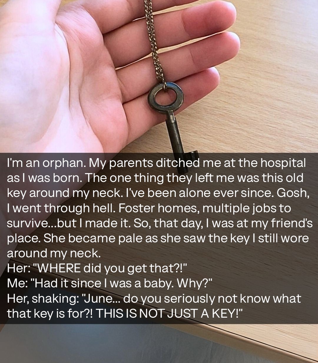 I reached into my coat pocket and pulled out the key. My fingers were clumsy. “Um… this belonged to my birth mother. Maybe. I’m not sure.”