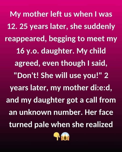 2 years later, my mother di:e:d, and my daughter got a call from an unknown number. Her face turned pale when