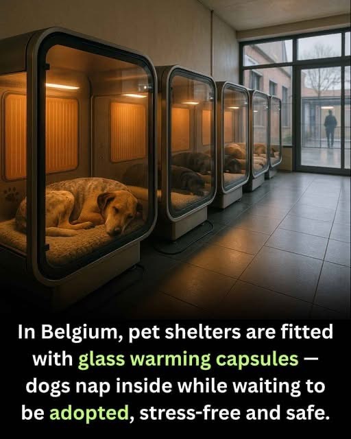 In Belgium, compassion meets innovation in the form of glass warming capsules installed in pet shelters. These transparent pods are designed to provide warmth, comfort, and a sense of security to dogs awaiting adoption. Crafted from thermally regulated glass and fitted with soft padding inside, each capsule offers a quiet, insulated space where animals can rest undisturbed, away from the noise and stress of the main kennel area.