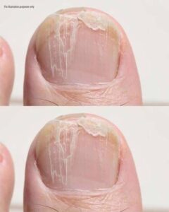 Symptoms of toenail damage can vary depending on the cause. Common signs include discoloration (yellow, brown, or white spots), thickening or thinning of the nail, brittleness, splitting, and a rough or ragged appearance. In some cases, the nail may detach from the nail bed, a condition known as onycholysis. Identifying these symptoms early can help in choosing the right treatment approach.