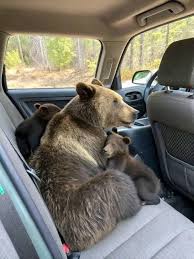 Inside, a large figure sat still in the driver’s seat. It was a mother bear, hunched over the lifeless body of her cub. Her fur was singed, her breathing labored, and her eyes met his with a depth of emotion that felt almost human: grief, pain, and exhaustion. The cub lay at her feet, small and motionless, covered in ash. Firefighters would later confirm it likely died of smoke inhalation during the chaos. But instead of fleeing, the mother had carried her baby to the nearest shelter she could find — the car — and sat there.