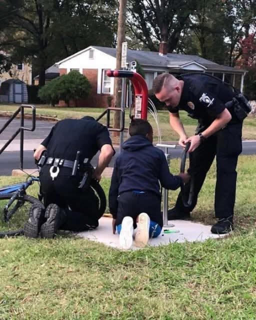 I had been trying to fix it on my own. The bike chain had slipped off—again—and I didn’t have the right tools to fix it properly. So there I was, crouched at that little repair post near the park, acting like I knew exactly what I was doing. My hands were covered in grease