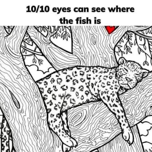 Among visual puzzles, few are as tricky as the latest one making waves online. The image shows a peaceful leopard resting on a tree branch, surrounded by lush natural details. But there’s a twist: a fish is cleverly hidden within the drawing, and only the sharpest eyes can spot it. The caption boldly claims, “10/10 eyes can see where the fish is,” challenging viewers to put their perception to the test.