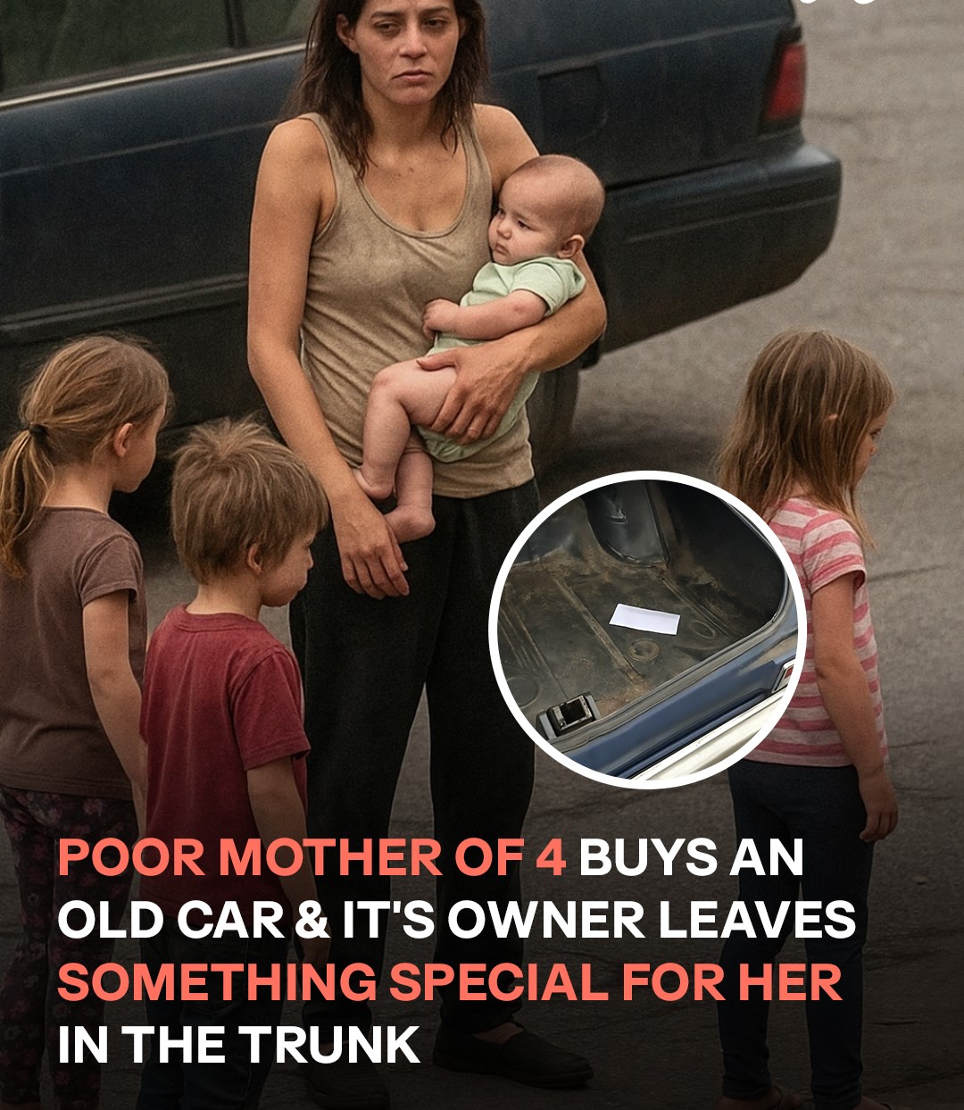 A single mother of four young children decided to buy a used car to get to work. The car’s old owner asked her to open the trunk when she got home. What she finds in the trunk would be life-changing.