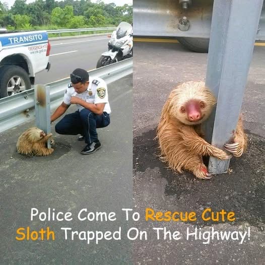 Such a cute thing! This is one compassionate policeman coming to the rescue of this sloth.