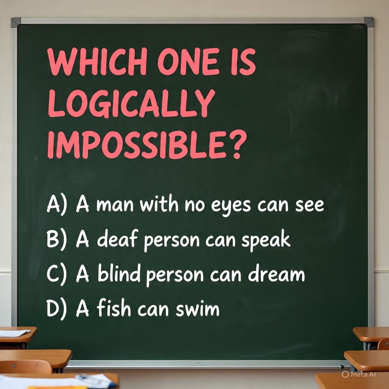 A) If someone has no eyes at all, biological vision is impossible — so this is logically impossible.