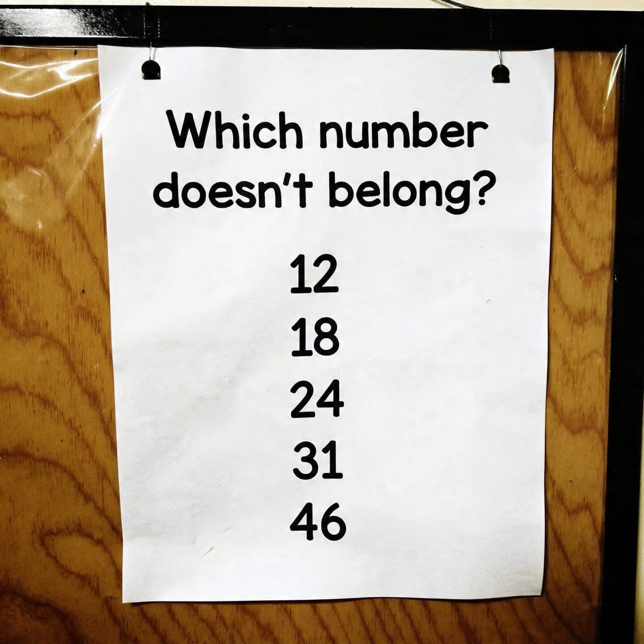 All the other numbers (12, 18, 24, 46) are even, while 31 is odd.