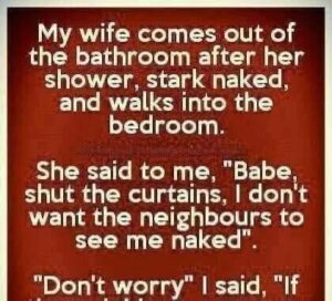 My wife stepped out of the shower, completely naked, and marched into the bedroom with confidence. “Babe,” she said, “shut the curtains! I don’t want the neighbours to see me naked.” I looked up from my phone, smirked, and without thinking, replied…Continues…👇👇